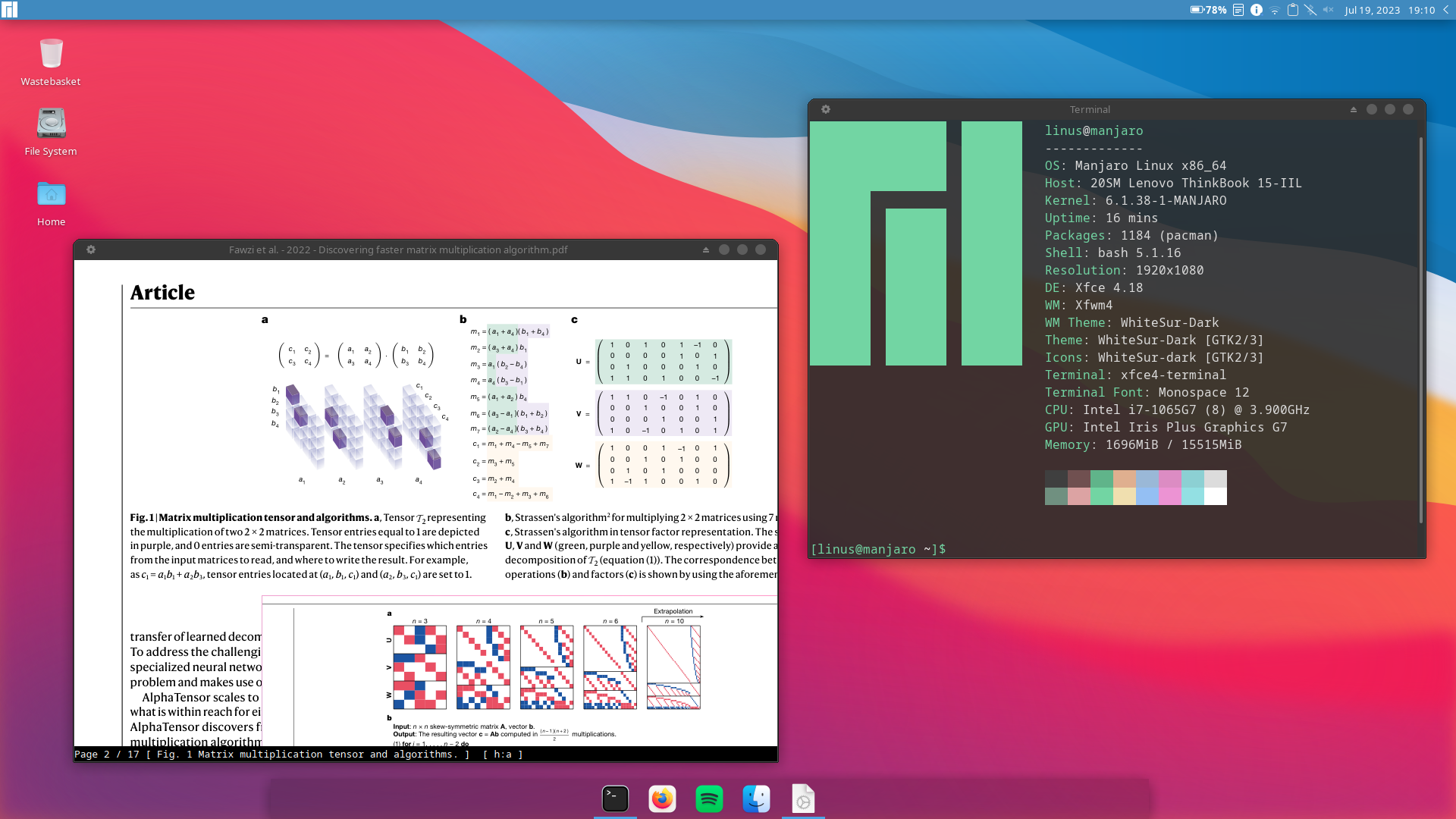 - Manjaro is an easy-to-use, Arch-based OS which was my first introduction to Linux operating systems. It is a stable system that I have never had a real issue with. Stick to using the Pacman package manager and avoid flatpak, snap and AppImage to keep life simple. Xfce is lightweight and allows you to create a simple attractive looking desktop environment. I could use a tiling window manager with Arch instead, but I like to have nicer visuals when using a laptop.